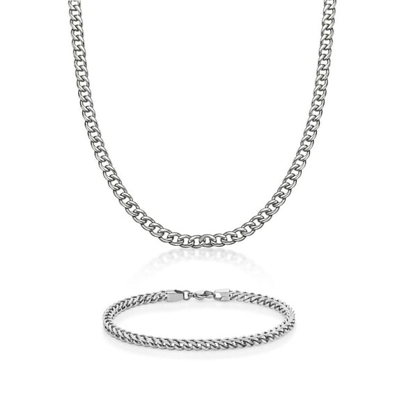 Chain Necklace Bracelet Men Jewelry Curb Cable Link Steel Gift Set Bodyj4you