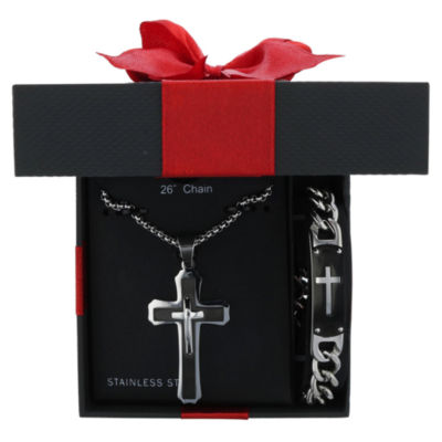 Mens 2 Pc Stainless Steel Cross Necklace And Id Bracelet Jewerly Set Jcpenney
